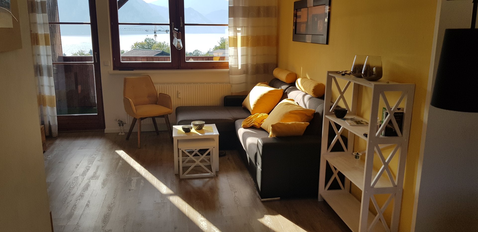 Wohnzimmer mit Seeblick