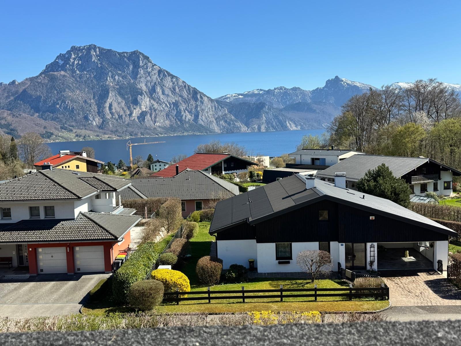 Ein besonderes Highlight ist die Loggia, von der aus sich ein beeindruckender, freier Blick über den Traunsee bis zum Traunstein eröffnet – ein Ausblick, der dauerhaft erhalten bleibt.